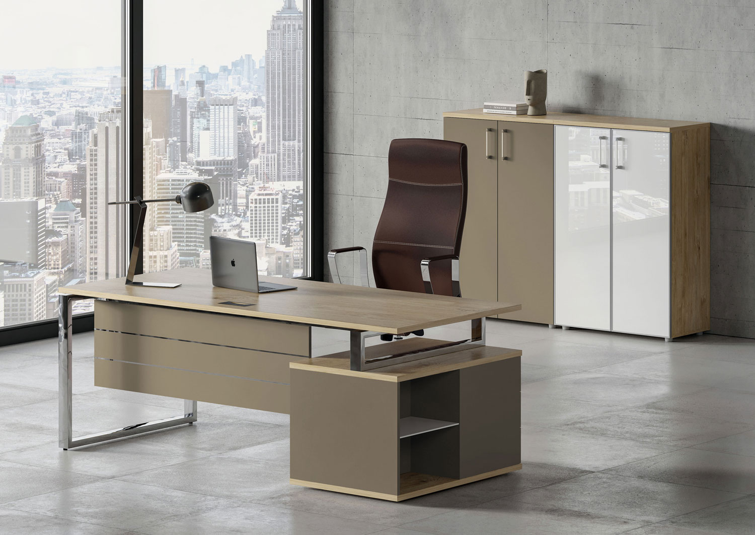 Стол руководителя с опорной тумбой греденцией , левый 1800х1800х753 SK.SRG-180 (L)