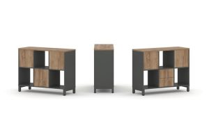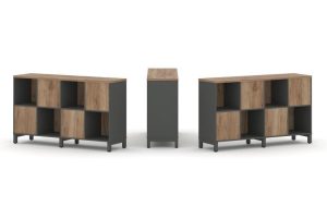 Набор стеллажа одностороннего, 2 яруса (Вставка с распашным фасадом-2шт, Вставка два ящика — 1шт) 1121x400x881 SN.NS-231
