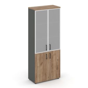 Шкаф высокий широкий (2 низких фасада ЛДСП + 2 низких фасада стекло сатин в раме) 796x400x1982 SN.STS-106