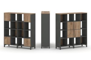 Набор стеллажа одностороннего, 3 яруса (Вставка с распашным фасадом-2шт, Вставка задняя стенка — 2шт) 1488x400x1248 SN.NS-341