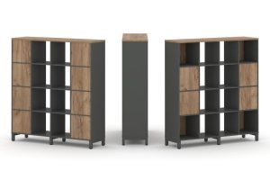 Набор стеллажа одностороннего, 4 яруса (Вставка с распашным фасадом-2шт,Вставка один ящик — 2шт, Вставка задняя стенка — 4шт) 1488x400x1615 SN.NS-441