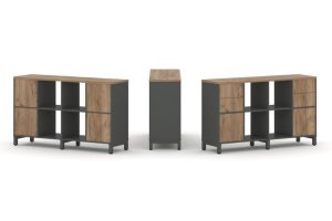 Набор стеллажа одностороннего, 5 ярусов (Вставка с распашным фасадом-2шт, Вставка один ящик — 2шт, Вставка задняя стенка — 3шт) 1121x400x1982 SN.NS-531