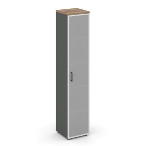 Шкаф высокий узкий левый (1 низкий фасад ЛДСП + 1 низкий фасад стекло сатин в раме) 400x400x1982 SN.STU-106 (L/R)