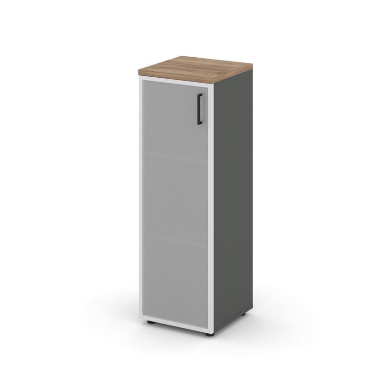 Шкаф высокий узкий левый (1 низкий фасад ЛДСП + 1 средний фасад стекло сатин в раме) 400x400x1982 SN.STU-103(L/R)