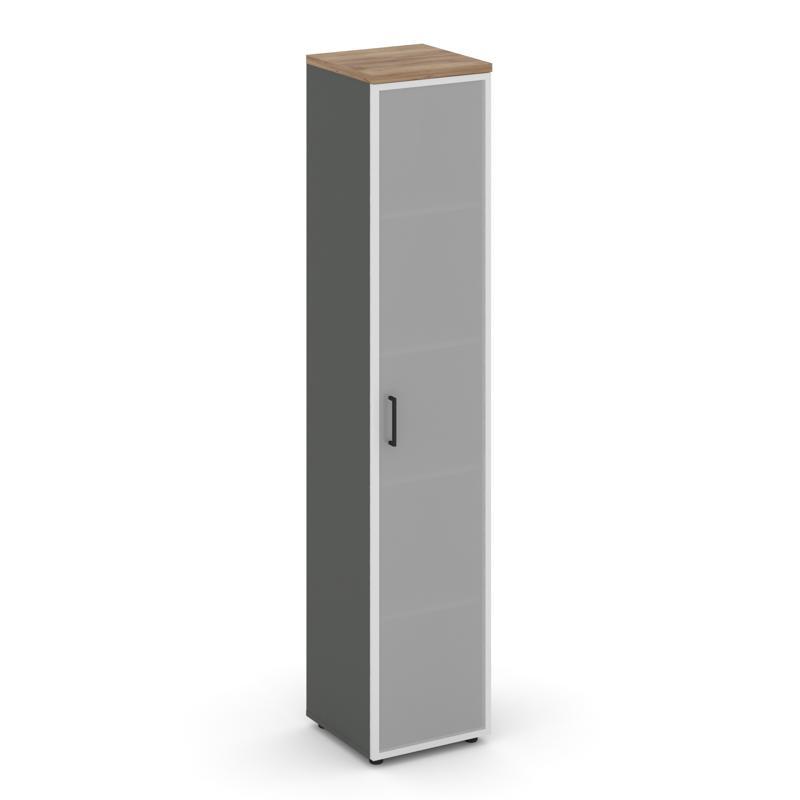Шкаф высокий узкий левый (1 низкий фасад ЛДСП + 1 низкий фасад стекло сатин в раме) 400x400x1982 SN.STU.E-106 (L/R)