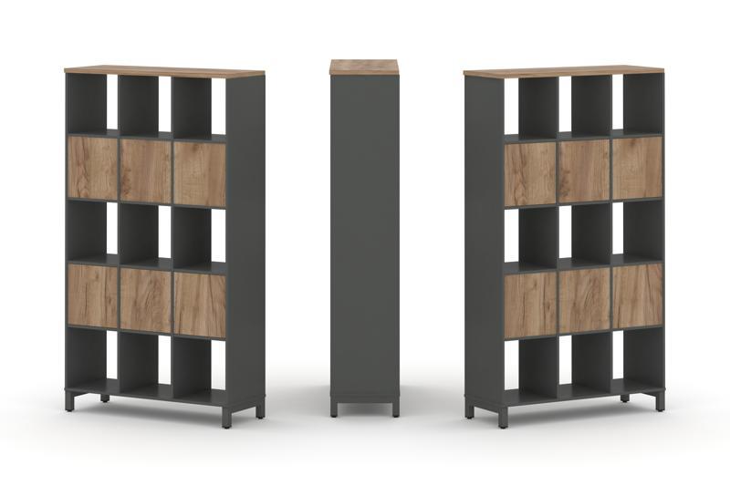 Набор стеллажа одностороннего, 5 ярусов (Вставка с распашным фасадом-2шт, Вставка один ящик — 2шт, Вставка задняя стенка — 3шт) 1121x400x1982 SN.NS-531