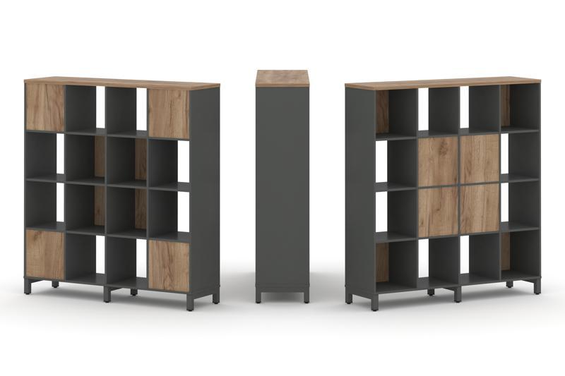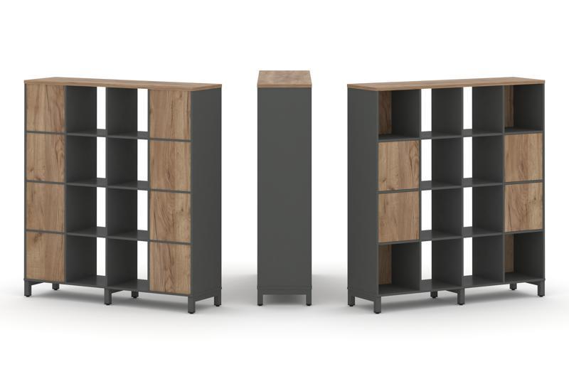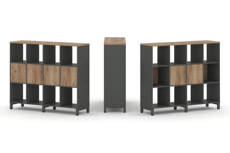 Набор стеллажа одностороннего, 4 яруса (Вставка с распашным фасадом-2шт,Вставка один ящик — 2шт, Вставка задняя стенка — 4шт) 1488x400x1615 SN.NS-441