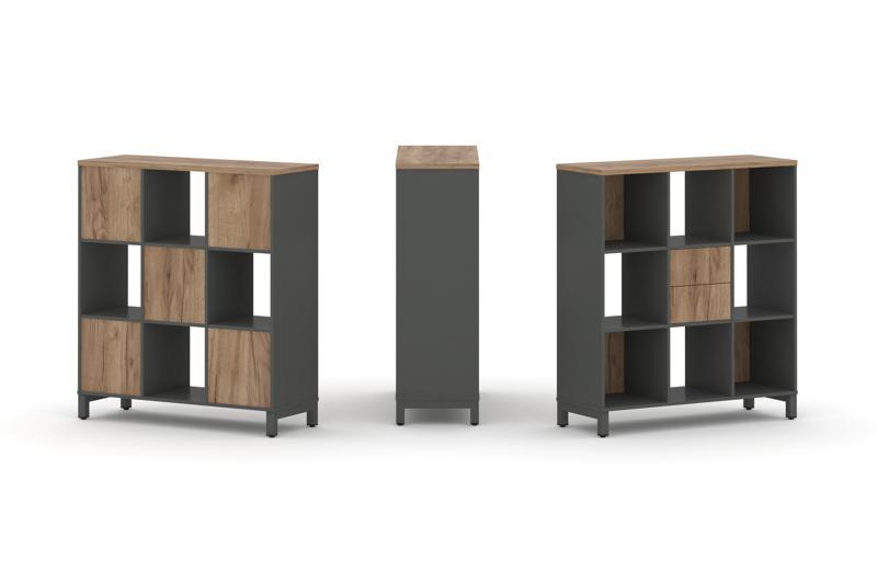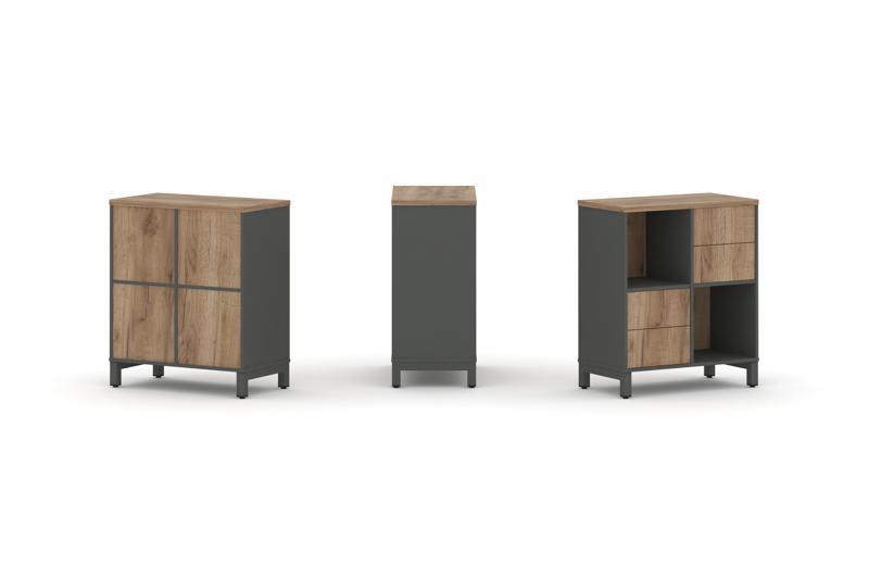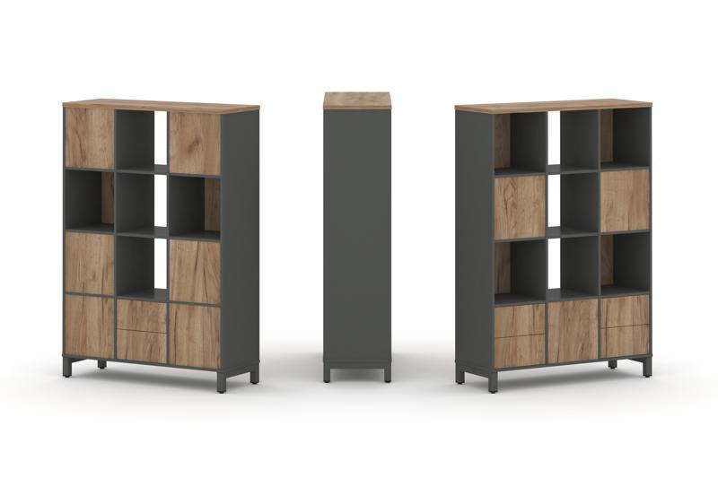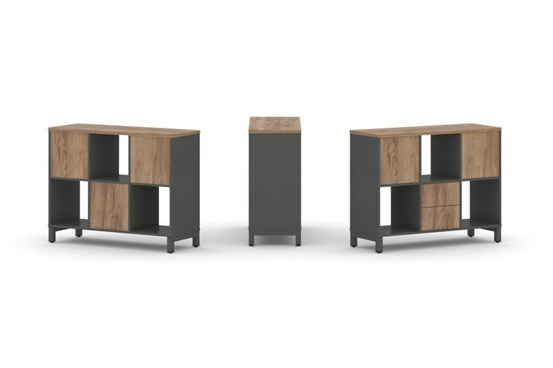 Набор стеллажа одностороннего, 2 яруса (Вставка с распашным фасадом-2шт, Вставка два ящика — 1шт) 1121x400x881 SN.NS-231