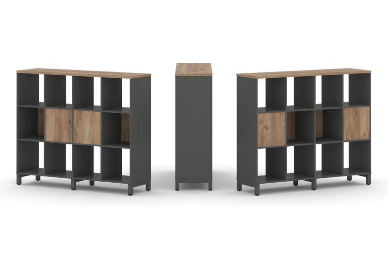 Набор стеллажа одностороннего, 3 яруса (Вставка с распашным фасадом-2шт, Вставка задняя стенка — 2шт) 1488x400x1248 SN.NS-341