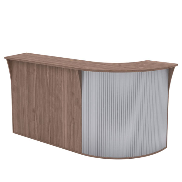 Полукруглая стойка ресепшн имеет просторную столешницу для размещения всего оборудования и материалов, необходимых для эффективной работы. В ящиках и полках хранятся документы, бланки и другие необходимые вещи. Кроме того, открытое пространство под столешницей максимально увеличивают пространство и поддерживают порядок на рабочем месте.
