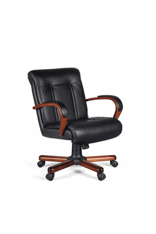 Обивка: кожа, экокожа, искусственная кожа, ткань Механизм: мультиблок Подлокотник: шпон с накладной в цвет кресла Опора: пятилучевая крестовина с деревянными накладками