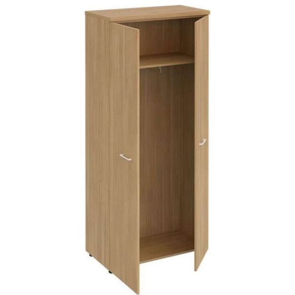 Шкаф укомплектован фиксированной по высоте полкой под головные уборы с выдвижной штангой для одежды