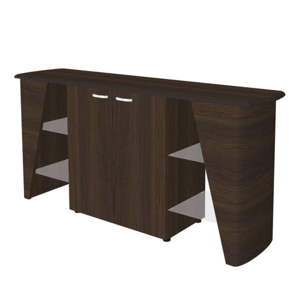 Греденция New.Tone NT-33 выполнена из шпонированного МДФ с эмалевым покрытием торцов и из ЛДСП, ручки — из хромированного металла.
