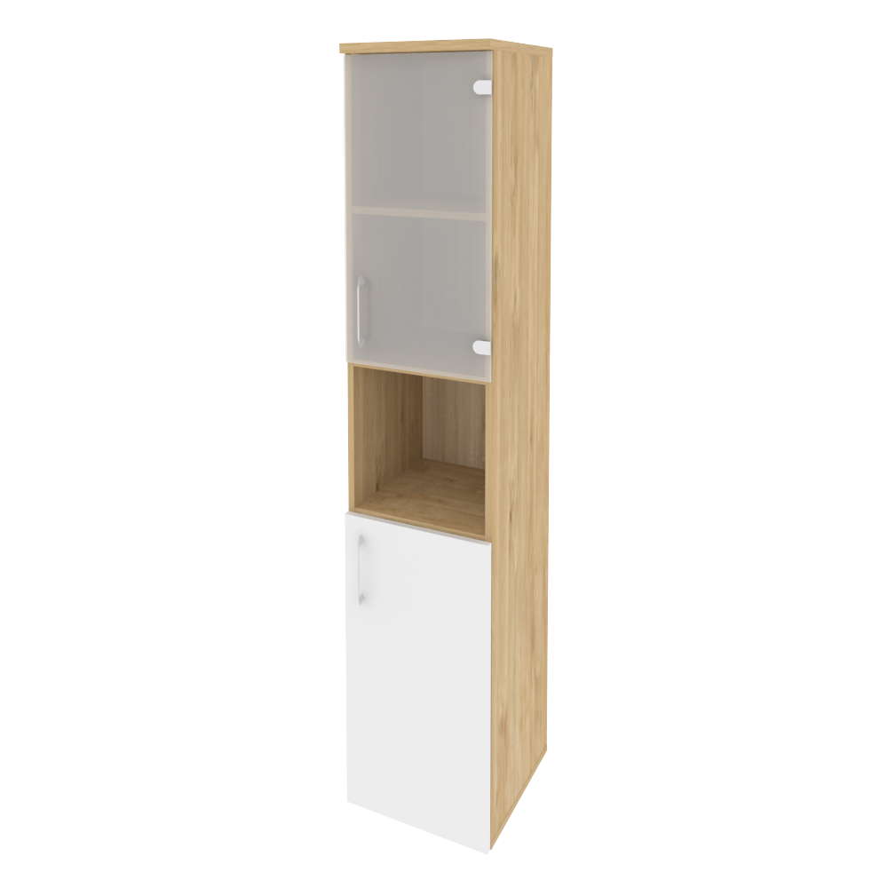 Шкаф пенал высокий правый (1 низкий фасад ЛДСП + 1 низкий фасад стекло) 400x420x1977 O.SU-1.4-R