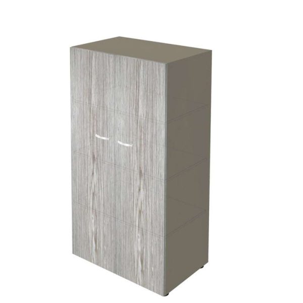 Шкаф средний с глухими фасадами New.Tone NT-42 выполнен из шпонированного МДФ и из ЛДСП, ручки — из хромированного металла. Двери оснащены встроенными механизмами плавного закрывания. Внутри три стационарных полки на усиленных стяжках.