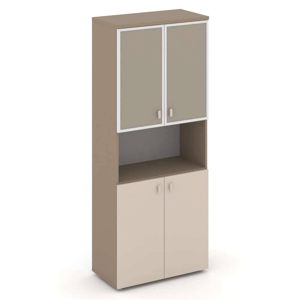 Шкаф высокий широкий (2 низких фасада ЛДСП + 2 низких фасада стекло лакобель Satin в раме) 800х420х1977 ES.ST-1.4R I/U