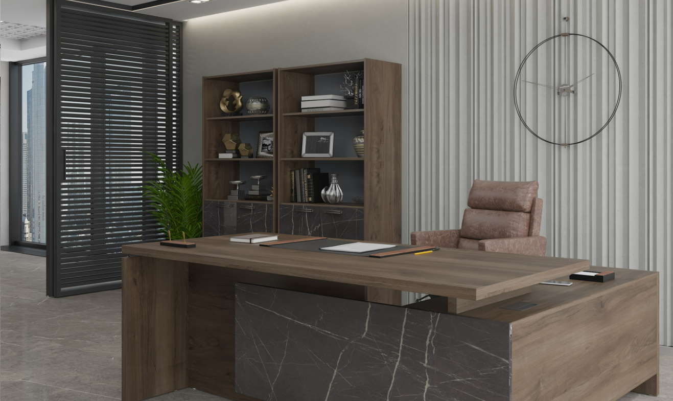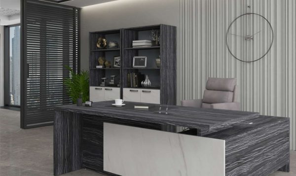 Стол письменный руководителя на опорной тумбе, левый. Фурнитура черная 2100x1800x750 FB-121L.DD